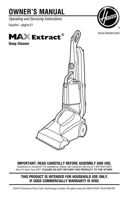 Hoover vacuum cleaners dual power carpet cleaner fh50900 owners manual.